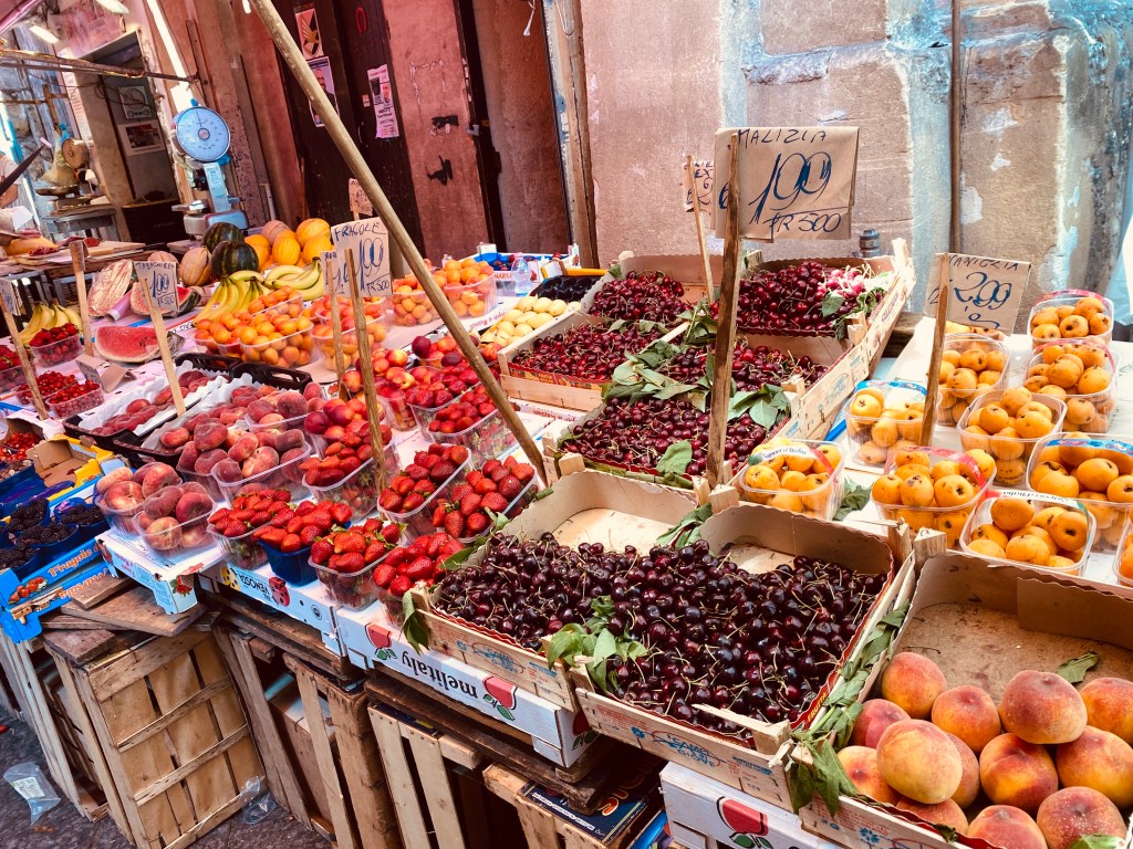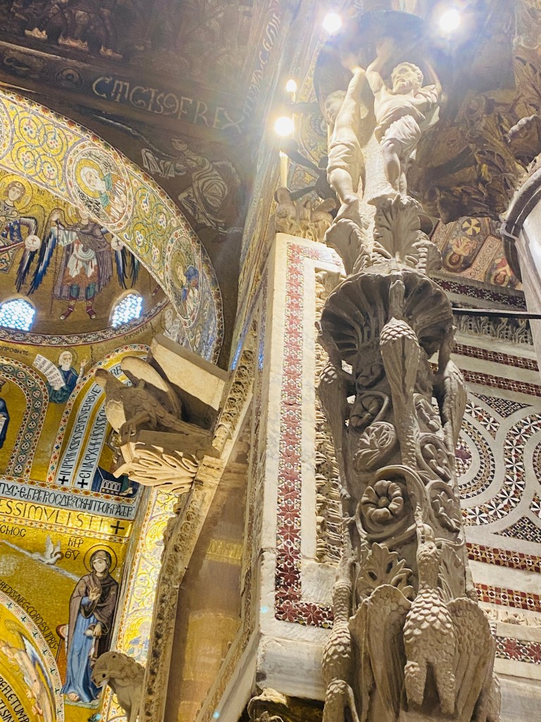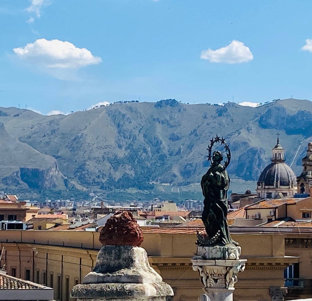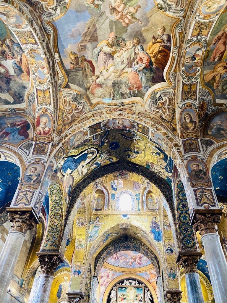 After 2 years of pandemic postponement, we began our long awaited adventure in the city of Palermo. Founded by Phoenicians in 8th Century BC, Palermo looks and feels like the OG Melting Pot. Sicily has been conquered and influenced by so many: Carthaginians, Greeks, Romans, Byzantines, Arabs, Normans, Spanish Bourbons…no doubt I’m leaving someone out. Everywhere you look you can see layers of history taking shape. Much of Palermo’s history is evident from the Arab/Norman Period. When you visit the Palazzo Normanni and the Capella Palatino, you can go underground to see the earliest stones of the first settlements and the varying layers over the centuries. Here you learn that Norman ruler Roger 2 led a sort of Golden Age where he respected the engineering and artistic genius of the Arabs and PRESERVED their work instead of destroying it. Today, it hosts the Sicilian Parliament It brings a literal tear to the eye to imagine a day when blonde folks and brown folks – Normans, Arabs, and Jews all lived together in harmony. Well, I like to think of it that way, and I will say it’s hard to be cynical when you see that Syncretism is real!! Nearly every building you see is a beautiful timeline of hundreds of years of architectural history, including the Fascist period and the subsequent complexes of the 60’s that continue to tell the story. Palermo was bombed tragically during World War II, and it’s citizens survived a longstanding hold under the mafia, that has, thankfully, come to an end. They are survivors, and you can feel it in the very marrow and soul of the streets. Maybe Democracy stands a chance after all…